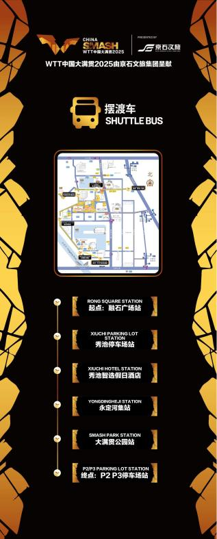 1.移动主题豪华巴士接驳专线。WTT期间,安排2辆双层移动主题豪华巴士,每日7班循环运营,设置日常循环和夜间末班车接驳路线,球迷持票根免费乘坐。