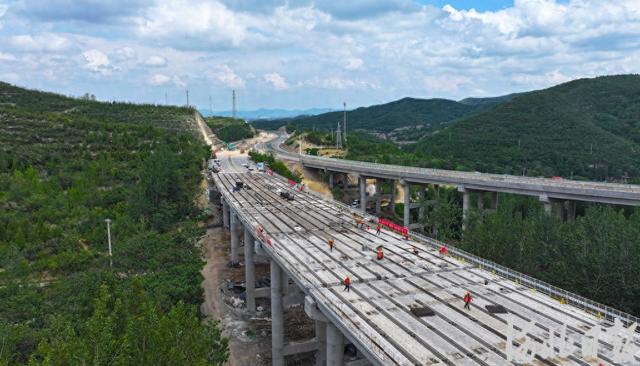 7月23日,工人在石太高速公路改扩建项目大龙窝1号桥现场施工。河北日报记者 史晟全摄