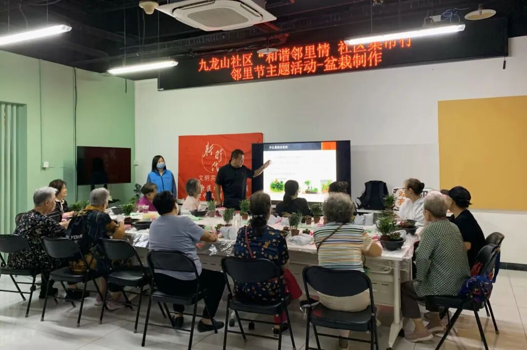 近日,九龙山社区“和谐邻里情 社区集市行”邻里节主题活动热闹启幕,其中的盆栽制作活动在社区活动室温情开展。20名居民满怀对绿植创作的期待提前到场,为活动预热。