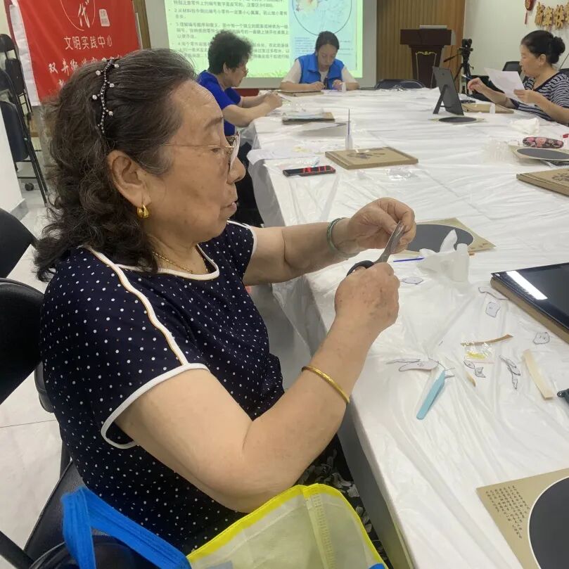 实操时,居民们纷纷拿起工具投入创作:专注填充浅色纸浆,互相帮忙修整细节,现场欢声笑语不断。创作过程中,邻里间积极交流技巧,“这里多叠点纸浆,立体感更强”“这个颜色搭配真好看,我下次也试试”,原本不太熟悉的邻居,在共同创作中逐渐熟络,满是温情互动。