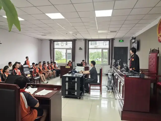 延庆区沈家营小学的同学们应邀来到延庆法院沈家营法庭参与法治实践活动,大家在法官的引导下,通过角色扮演、庭审模拟和集体宣誓,沉浸式体验司法流程。模拟庭审结束后,法官与学生扮演的“家长”展开“家庭教育指导”,强调家庭在预防校园欺凌中的重要作用。活动最后,学生们庄严宣誓:“拒绝欺凌,争做守法小公民!”铿锵有力的誓言在法庭回荡,这场沉浸式的体验也在大家心中埋下了法治的种子。