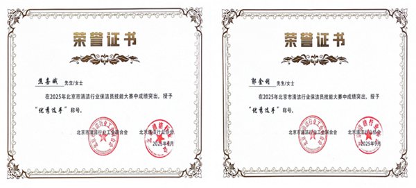 在个人赛场上,中坤环境选派的焦喜娥、郭金利两名选手虽为首次征战市级清洁行业赛事,却展现出非凡的专业素养与沉稳心态。面对高强度的比拼,她们在实操环节中严格遵循规范流程,每一个操作步骤都娴熟精准,充分展现了中坤环境保洁人员过硬的专业技能,最终凭借出色表现获得大赛评委一致肯定,双双摘得 “优秀选手” 称号,为公司赢得荣誉的同时,也彰显了个人的职业风采。