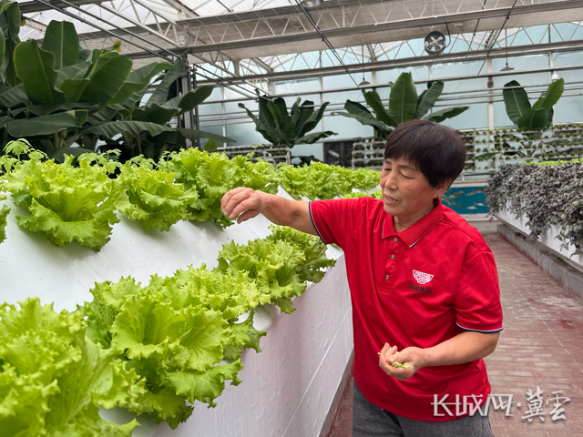在塔元庄同福乡村振兴园智慧农场,塔元庄村村民唐秀英正在查看无土栽培的生菜长势。“不用风吹日晒,从家过来,三分钟就能到,在这干一个月能挣三千块钱,特别满意。”说话的同时,智慧农场来了一批20人左右的参观团队,90后讲解员孙周璇进行细致的讲解。孙周璇是90后,正定本地人,2020年大学毕业后,先在外地工作了几年,随着同福集团在塔元庄的建设逐渐完善,2023年,她返回家乡,找到了这份家门口的工作。“每天都能向来自全国各地的参观团队介绍正定,展现乡村振兴的成果,我感到特别自豪。”