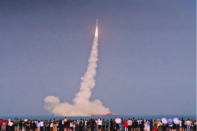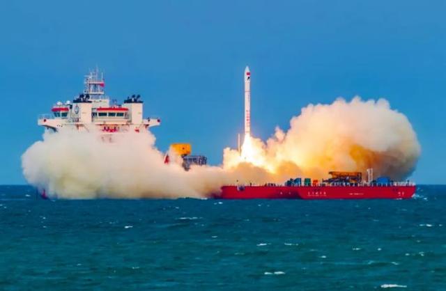 2022年4月30日,第三次海上发射是国内首次“一站式”海上发射,实现火箭总装、总测、出港、发射一体化历史性突破。