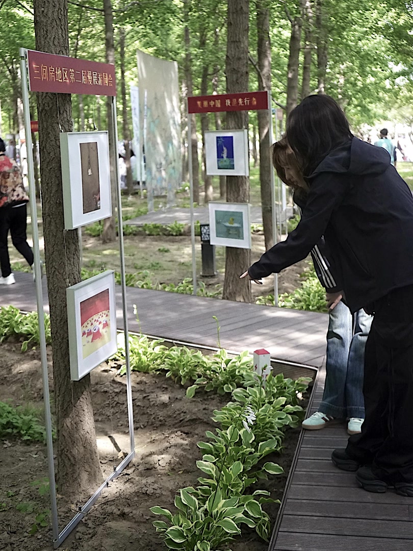 展览现场,漫画作品与公园的自然美景相映成趣,成为亲子家庭与艺术爱好者的热门打卡地。不少家长带着孩子边看边聊,在轻松氛围中传递节水意识。带孩子观展的市民林女士表示:“没想到在社区公园就能看到这么多国家的原创漫画,既有趣又有意义,这种形式真好,感觉艺术成了我们生活的一部分。”