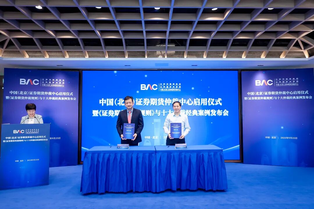 9月25日下午,中国(北京)证券期货仲裁中心启用仪式暨《证券期货仲裁规则》与十大仲裁经典案例发布会在位于北京CBD正大中心的国际商事仲裁中心(北京)实体平台成功举办。中国(北京)证券期货仲裁中心由北京仲裁委员会/北京国际仲裁院(以下简称北仲)发起设立,标志着北京在构建证券期货专业领域争议解决体系、提升资本市场法治化水平方面迈出关键一步。