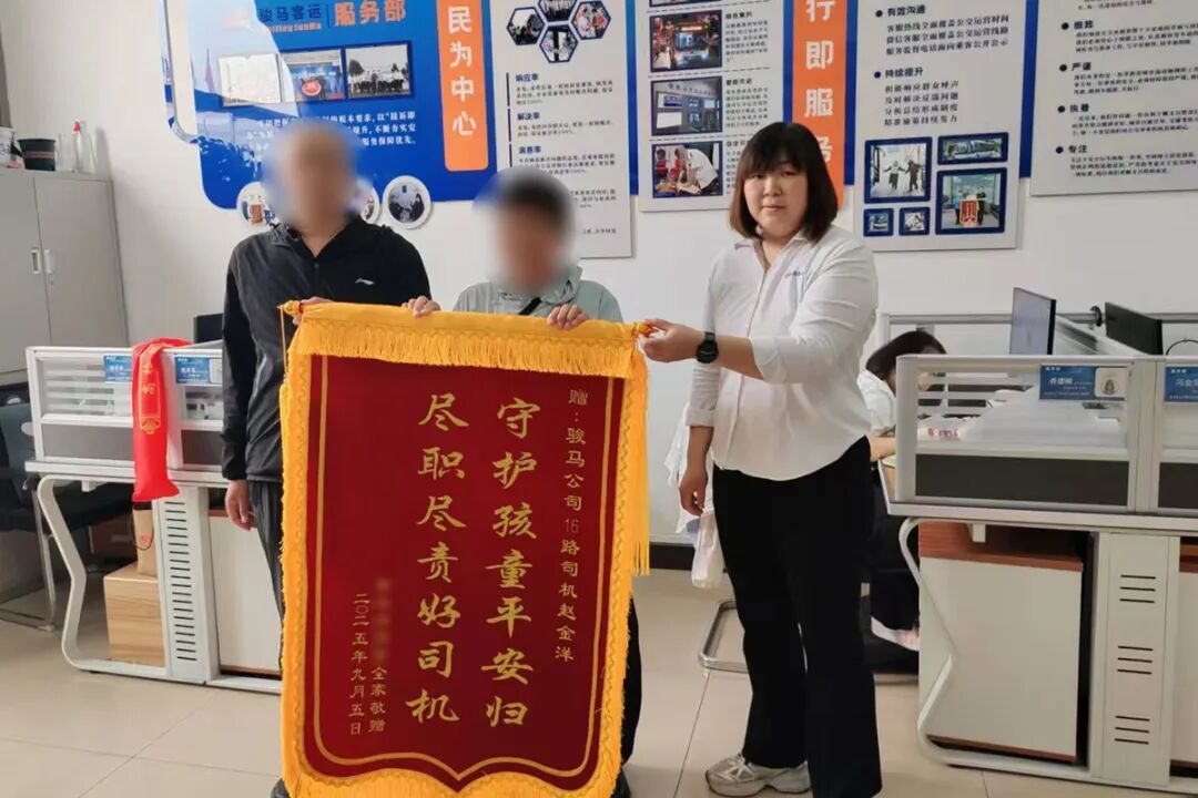 收到锦旗的赵金洋说:“作为一名公交车驾驶员,照顾乘客是我的职责。同时我也是两个孩子的父亲,对家长的担心也是感同身受,碰到小孩子独自等车,也不会坐视不管的。”