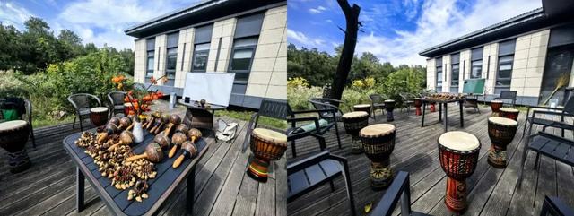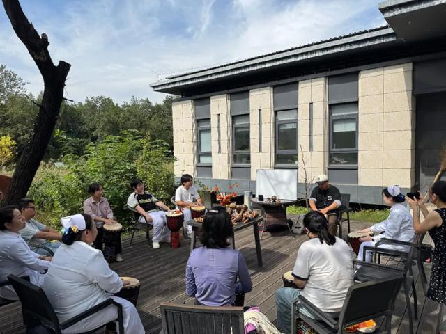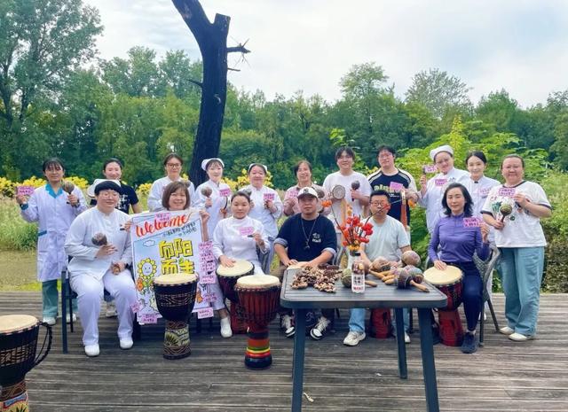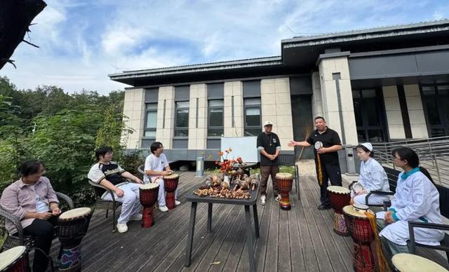 尾声时分,夕阳铺洒暖光,晚风裹着节奏流动。无需复杂乐谱,简单的“咚—哒—咚”节拍,在众人默契配合下化作动人旋律。医护们卸下工作紧张,或随节奏点头,或与同事互动,或望向湖面,在音乐与自然的双重包裹中彻底放松,压力消散,归属感满溢。