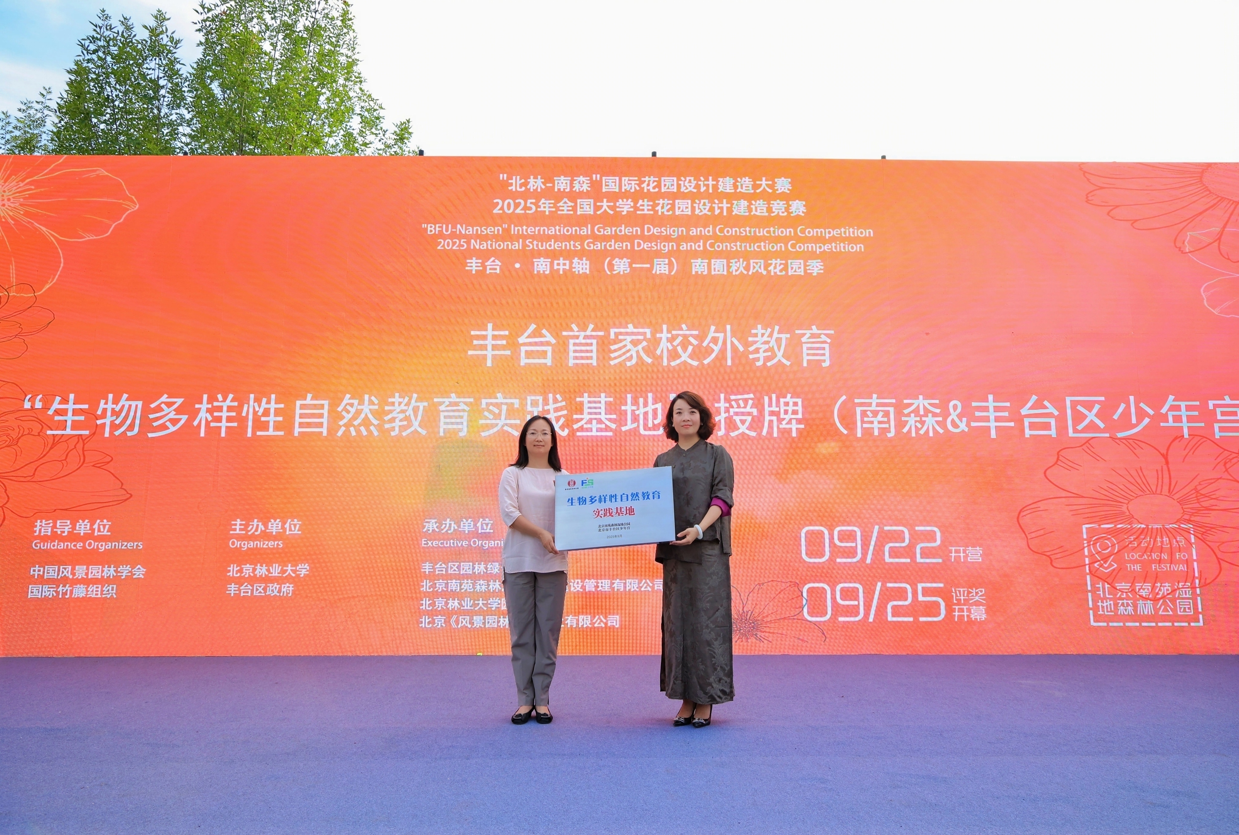 值得关注的是,开幕式现场,丰台首家校外教育“生物多样性自然教育实践基地”挂牌成立。作为2025丰台·南中轴(第一届)南囿秋风花园季的重要成果,该基地旨在推动南苑森林湿地公园成为中心城区生物多样性示范地、自然教育实践载体,为青少年提供优质自然教育,助力丰台区花园城市建设及校外教育资源拓展。