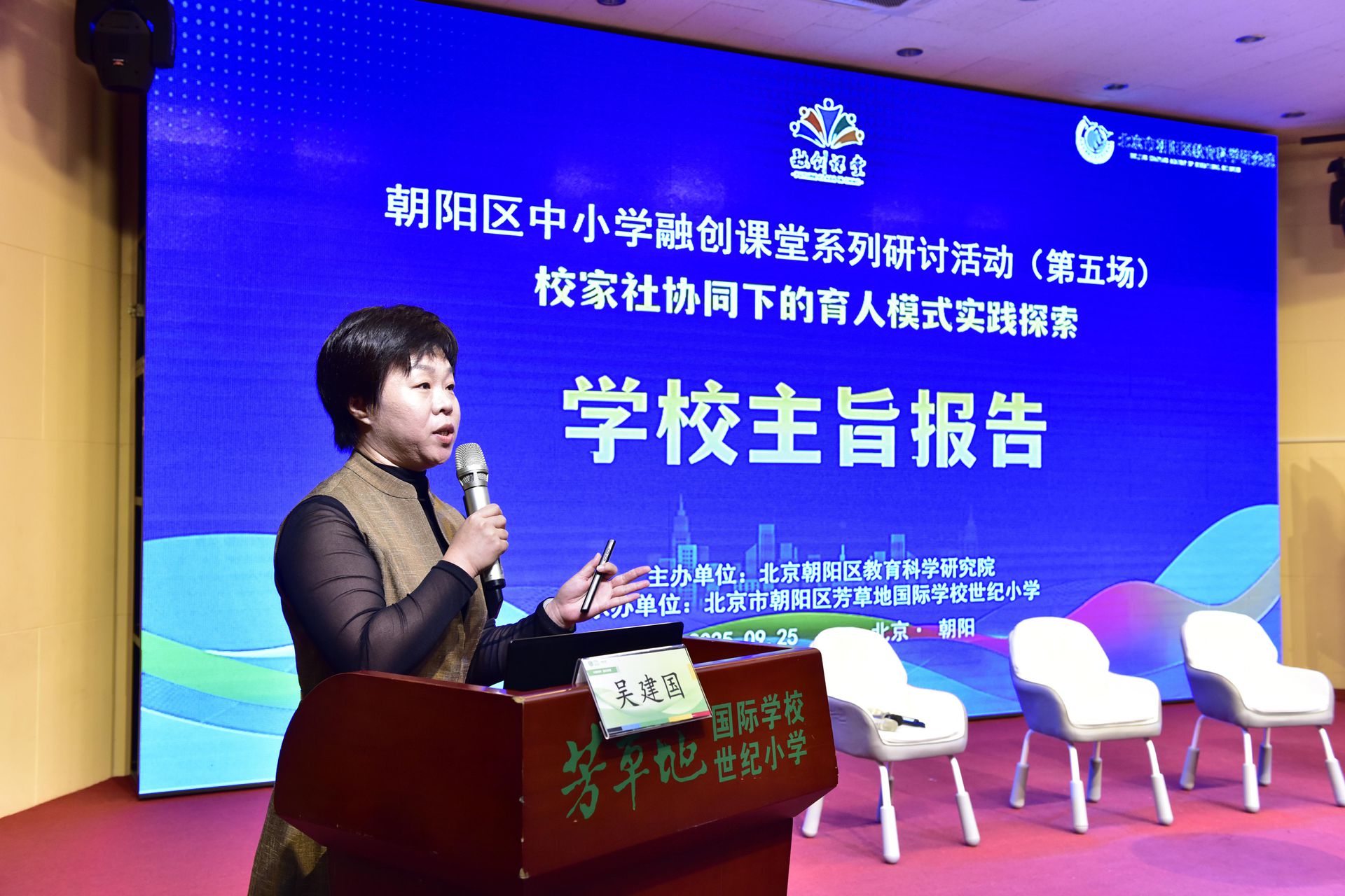 9月25日,北京市朝阳区中小学“融创课堂”第五场系列研讨活动在北京市朝阳区芳草地国际学校世纪小学举行。本次活动聚焦协同育人,依托“成果展示+课堂观摩+论坛交流”等不同形式,系统呈现以学校教育为主导、家庭教育为基础、社会教育为支撑的协同育人实践成果。