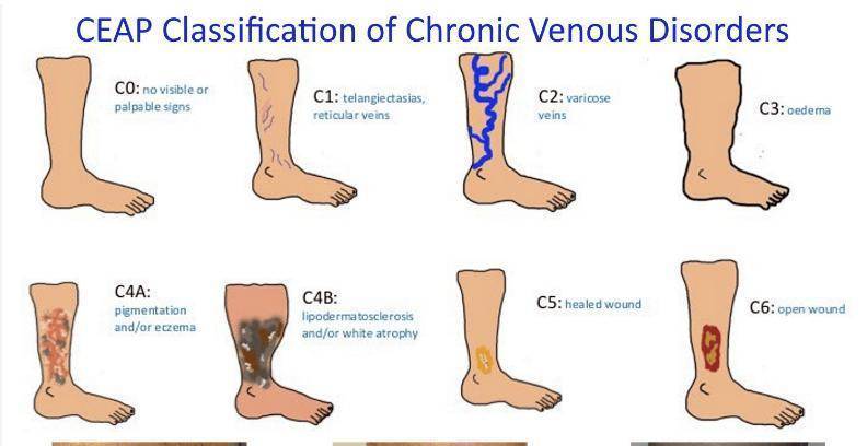 下肢静脉曲张CEAP临床分级: