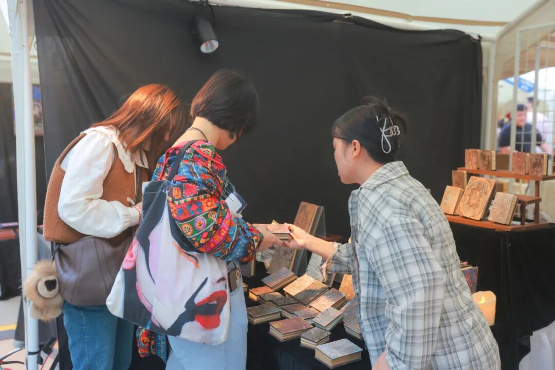 “这个宝藏集市,既好玩又好逛”,恰逢金秋送爽,市集现场人流如织,摊位前挤满了来自四面八方热情的面孔,各种手工艺品琳琅满目,包罗万象,木雕、陶瓷、布艺、皮具等手工艺品让人目不暇接,此外,还有众多原创IP的文创产品以及充满创意的“小玩意儿”,让人爱不释手,部分摊位还展示了旧物、复古收藏等,为市集增添了浓厚的文化气息。