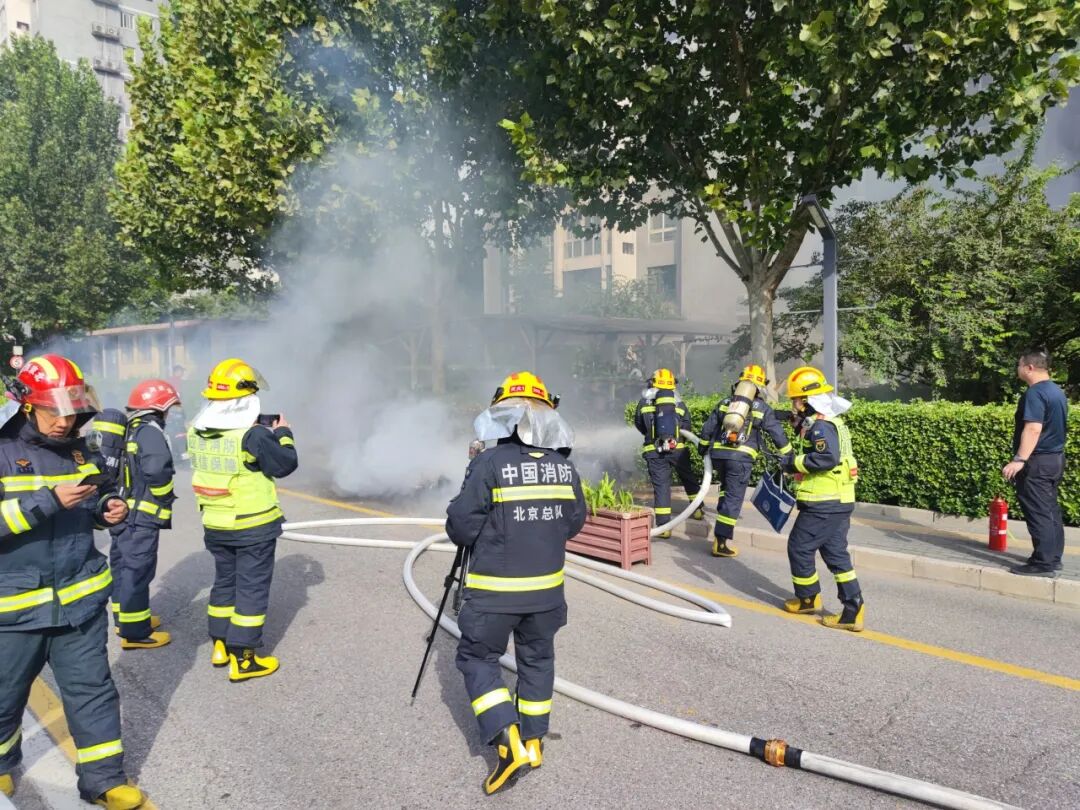 1分钟内,收到消息的应急人员携带消防拉钩、水带等消防器械抵达,首先用拉钩果断将起火的2辆电动自行车快速拖出车棚,移至空地,同时,连接好消防水源进行扑灭处置。太阳宫消防救援站赶到后立即接手,对事故实施专业处置,明火扑灭后,消防员用测温仪对起火车辆电池部位进行检测,确认无复燃风险后对现场进行了清理。