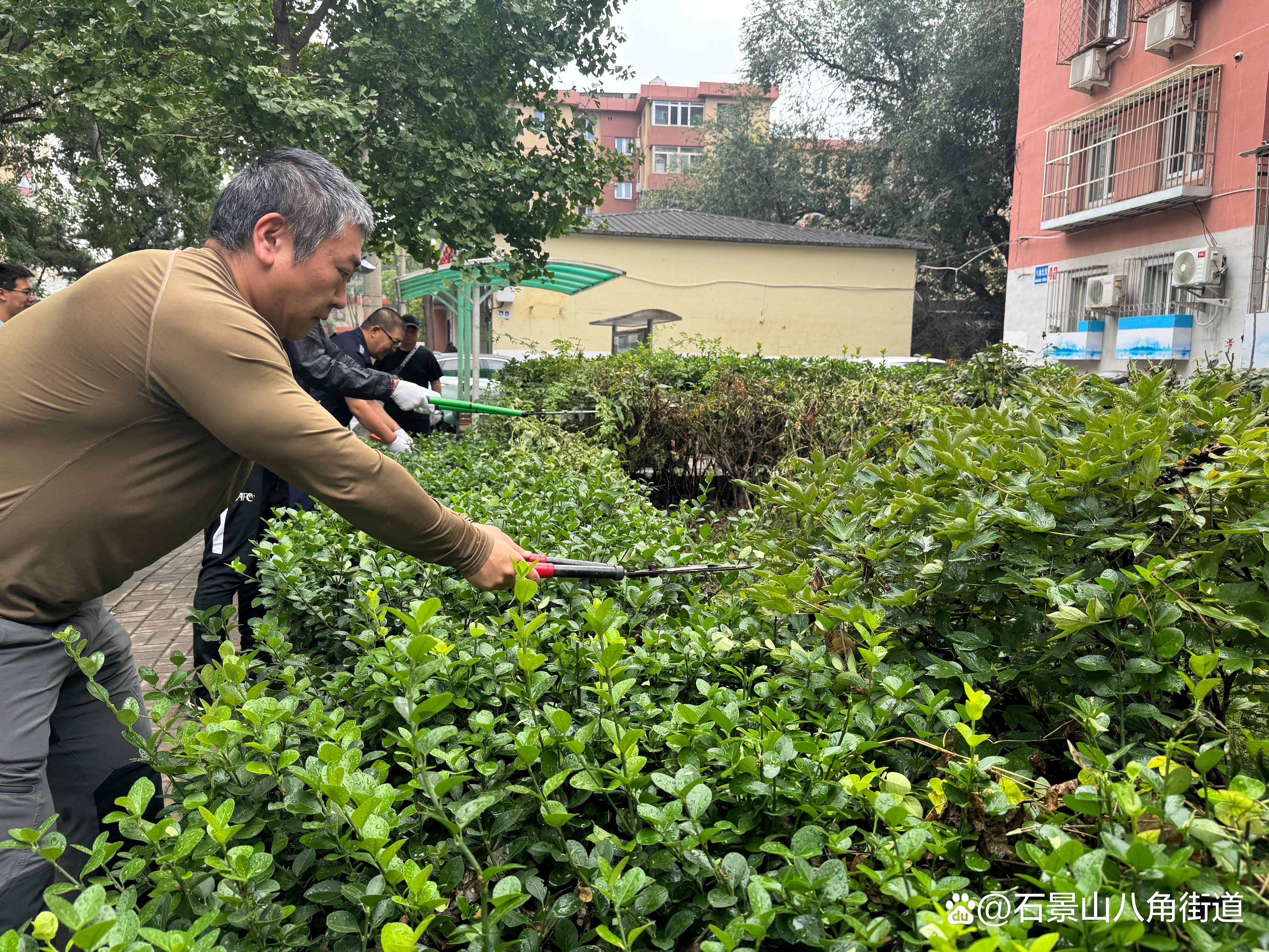 八角北里社区重点对社区内的绿化植物进行科学“整容”,经过修剪后的绿篱有棱有角、横平竖直,线条流畅,显得格外精神。