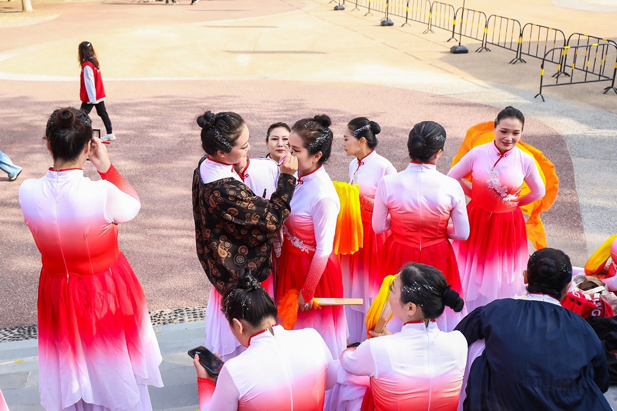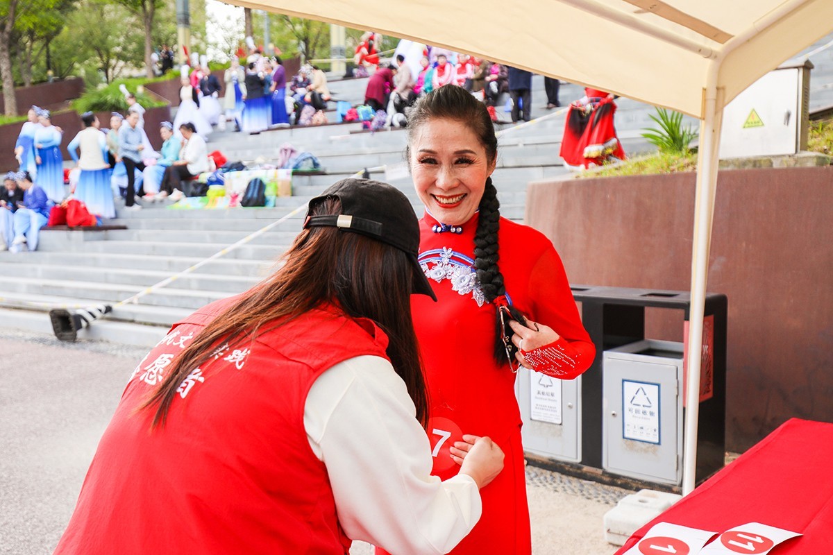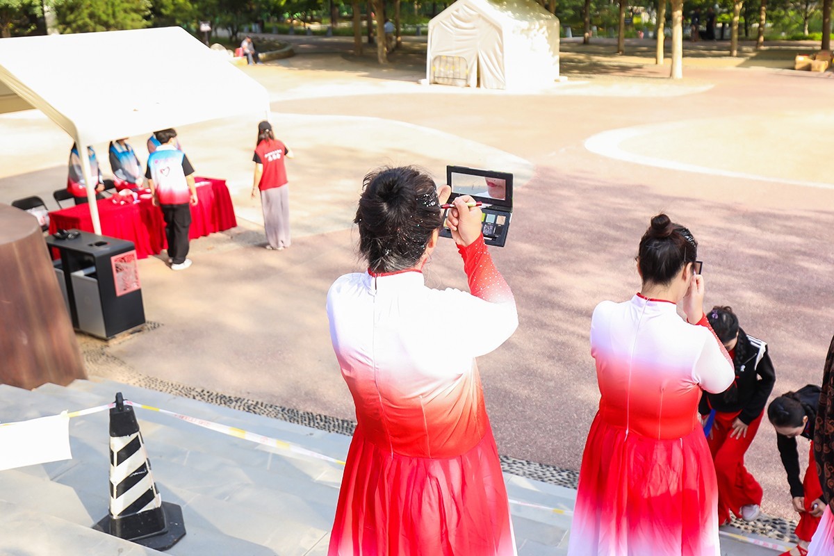 广场一角,参赛选手们正热火朝天地做着赛前准备,大家既紧张又兴奋,欢笑声此起彼伏。