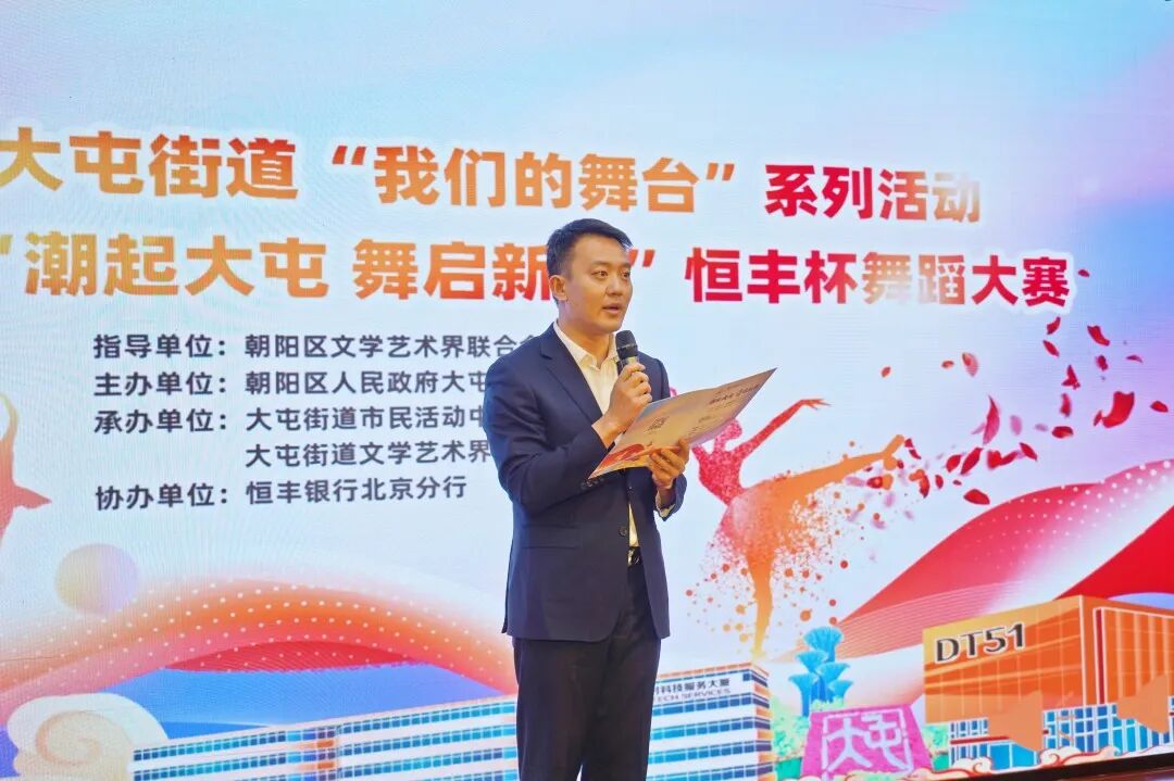 本次大赛由朝阳区文学艺术界联合会指导,朝阳区人民政府大屯街道办事处主办,大屯街道文学艺术界联合会、市民活动中心承办,恒丰银行北京分行协办。大赛以扎实推进大屯地区公共文化服务发展、激活区域文化活力、丰富群众精神文化生活为出发点,严格遵循朝阳区基层文化团队建设整体工作部署,致力于选拔艺术水准高、表现力强的舞蹈作品与团队,打造具有鲜明特色的文化名片,推动地区舞蹈艺术繁荣发展,为文化事业高质量发展注入源源不断的新动能。