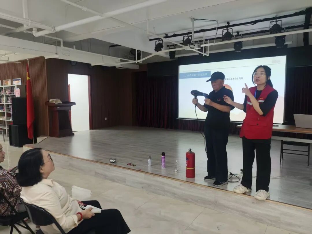 培训结合常见火灾案例以及居民日常生活中可能遇到的消防安全隐患,聚焦家庭火灾预防、电器安全使用、初期火灾扑救技巧及逃生自救方法等核心要点。讲解过程中,工作人员拿起灭火器、灭火毯等消防器材,演示正确操作步骤,确保每一位居民都能清晰看到操作细节。