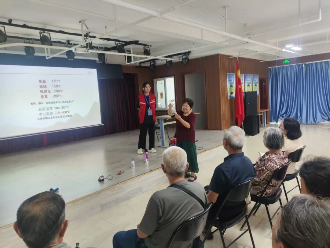 在互动问答环节,工作人员就居民提出的问题逐一进行解答;在实操体验环节,居民纷纷上前,在工作人员的指导下亲自操作灭火器、展开灭火毯,体验灭火过程,熟练掌握操作技巧。