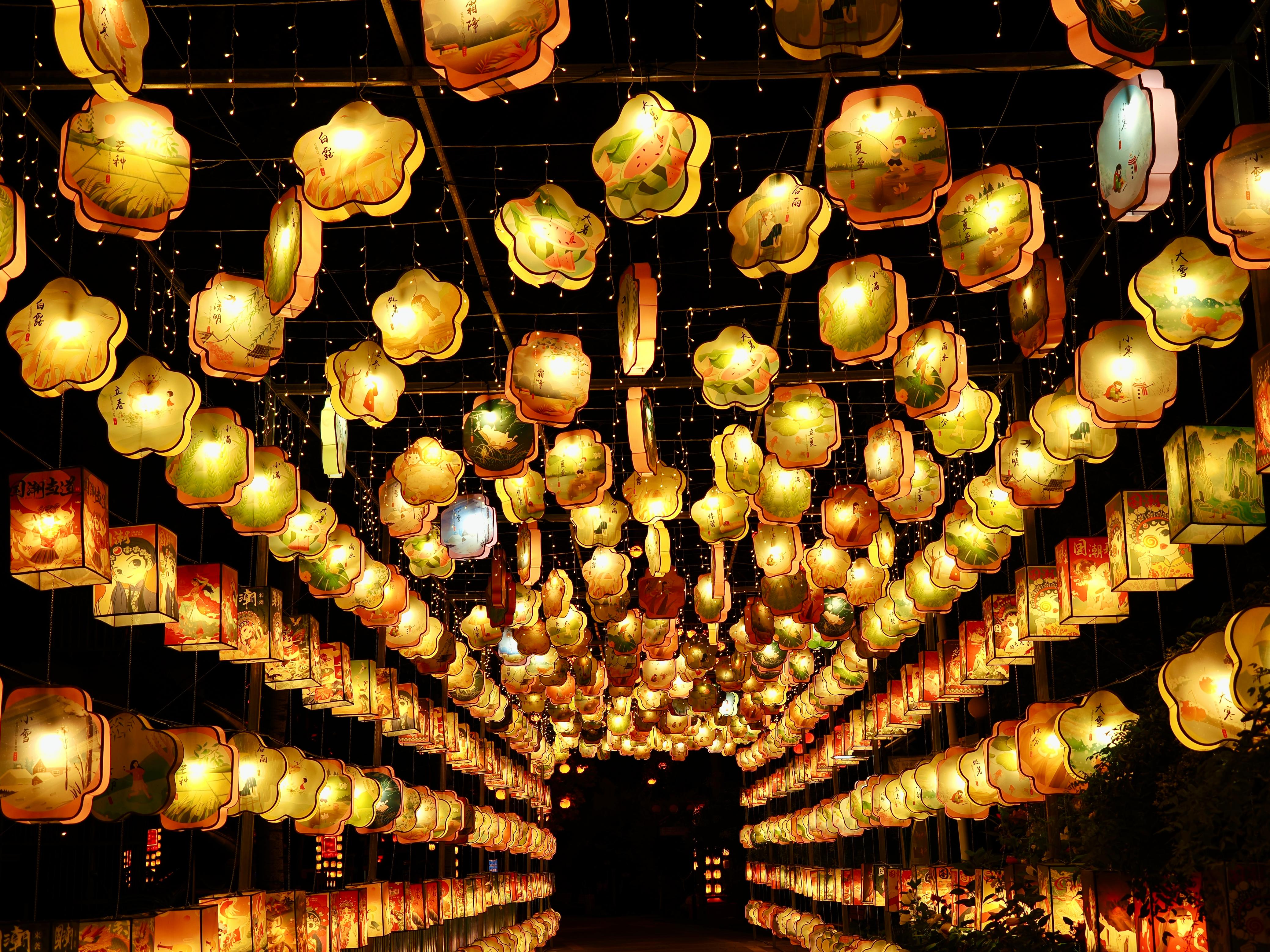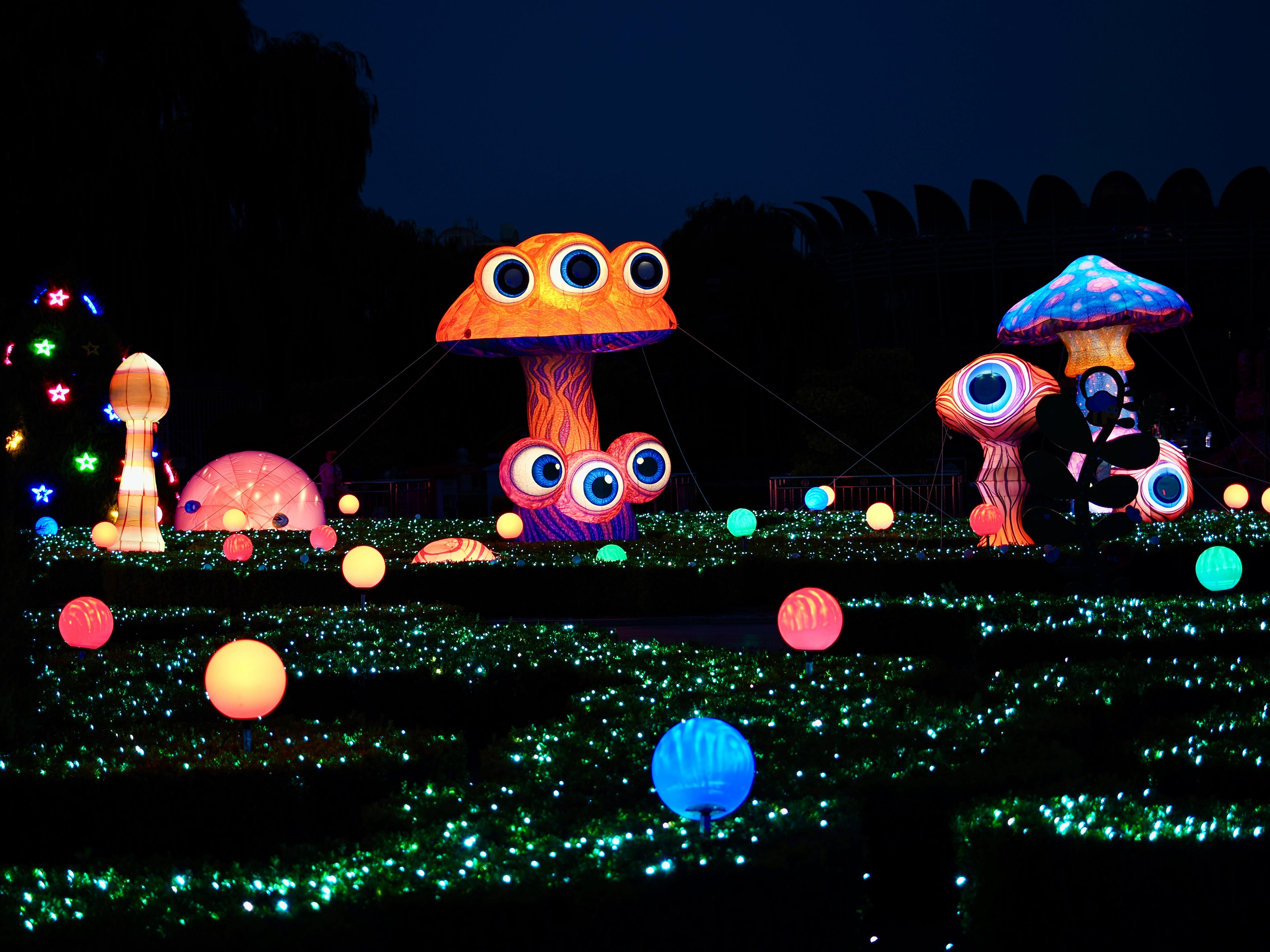 夜幕落下,“蘑幻夜花园”悄然点亮