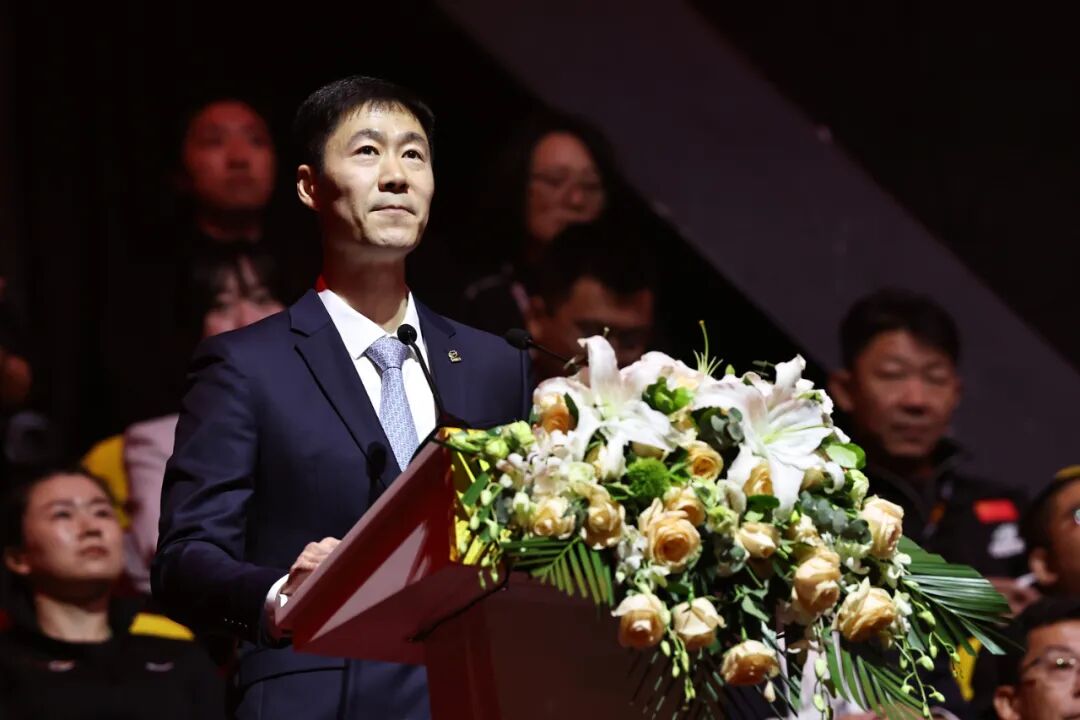 北京市石景山区委副书记、区长万隆首先进行欢迎致辞,他提到:“今年是WTT中国大满贯第二年,我们再次相聚在首钢园这片承载着工业记忆与时代活力的热土。正赛与青少年大满贯‘同址同期’举办,老将的沉稳与新星的锐气碰撞出别样火花。大满贯公园焕新升级,我们以首钢园为中心,串联起法海寺壁画博物馆的文化底蕴、石景山游乐园的烟火气息、六工汇商圈的时尚活力,把‘赛事记忆’刻进城市画卷。”