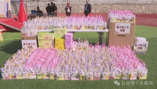 仪式上,喜来健医疗器械(北京)有限公司向省青基会正式递交学校建设资金捐赠牌,并向学校捐赠包括大型激光打印机、彩色复印机、碎纸机、学生礼包等多项实用物资。