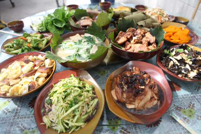 特色玻璃宴:“玻璃宴”是当地特色美食,因用村里自产的“玻璃叶”(柞树叶)包裹食材烹饪而得名,菜品清淡少油、营养健康,特别适合长辈口味!推荐品尝玻璃叶贴饼子、山野菜拼盘。