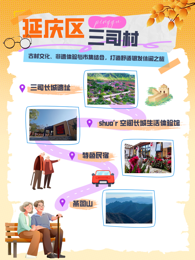 三司村位于延庆区井庄镇,距离市区大约2.5小时车程。这条线路蕴藏着长城文化体验与山野休闲乐趣,适合想深度感受历史底蕴又偏爱自然的游客。第一站可以探访三司长城遗址,顺着夯土与石垣的纹理看过去,远眺群山环抱的壮阔景致。从遗址出发,可来到村内shua’r空间长城生活体验馆,在这里不仅能通过文创展品、互动装置深入了解长城文化,还能亲手参与手作体验,感受长城周边的生活美学。游玩过后,可以入住周边特色民宿,民宿多融入乡村肌理,部分房型推窗可见山景,能让人卸下疲惫、舒适休憩。次日从民宿出发,驱车10分钟抵达燕羽山,沿着难度适中的登山步道穿梭林间,呼吸清新空气。