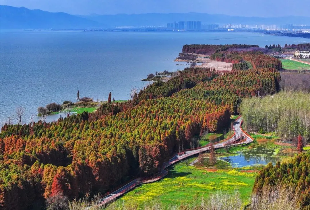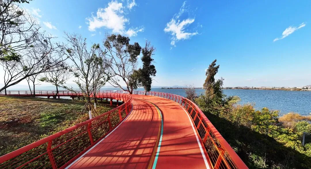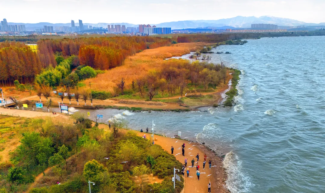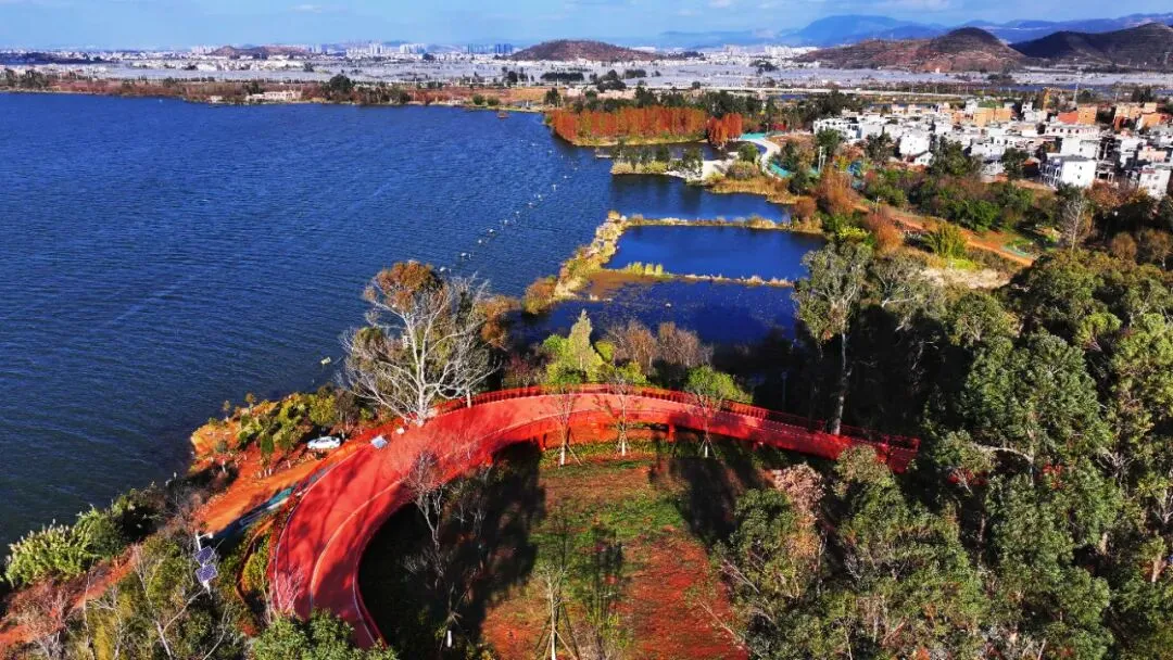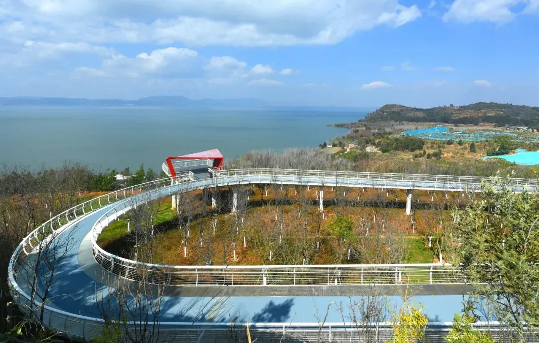 螺旋桥面俯瞰“五百里滇池”,800米亲水走廊踩水超爽,完美还原《大观楼长联》意境。