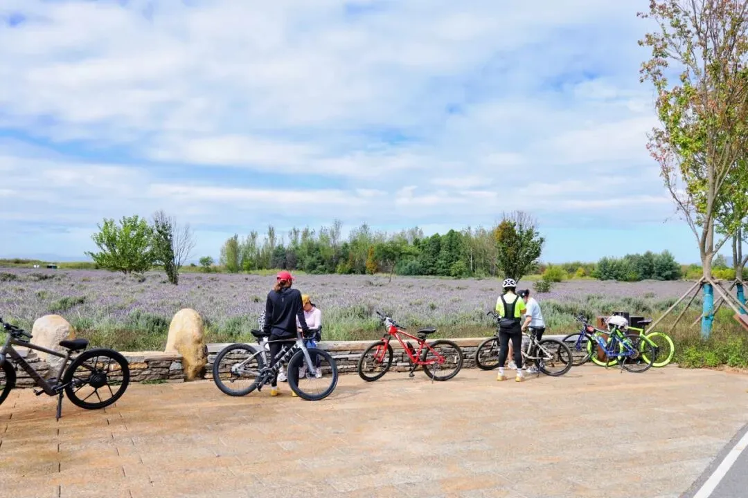 步行到斗南湿地公园,租共享单车骑向薰衣草庄园,林之桥穿过后就是紫色花海。