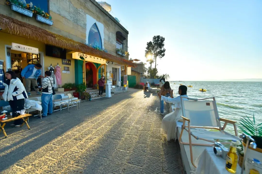 3397米长桥能远眺滇池碧波!“滇之眼”红框平台刚好框住西山睡美人,必拍全景照。顺路拐进海晏村,俏妈豌豆粉配炸洋芋10元管饱,青石板路逛渔村老宅。