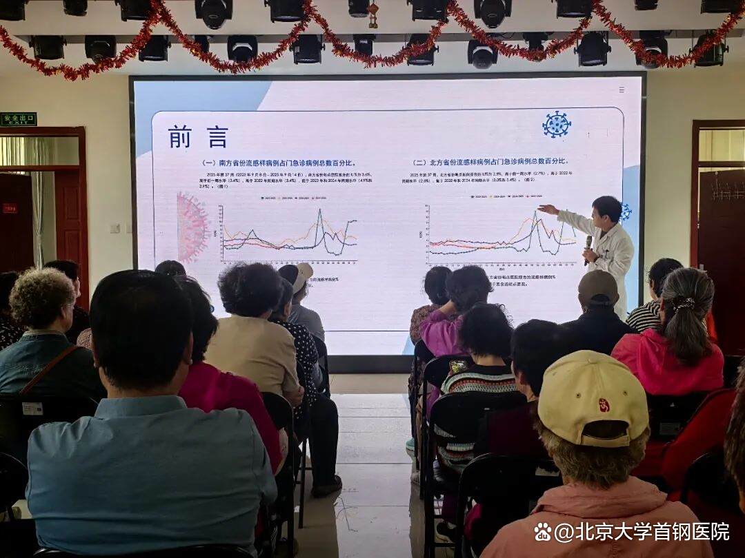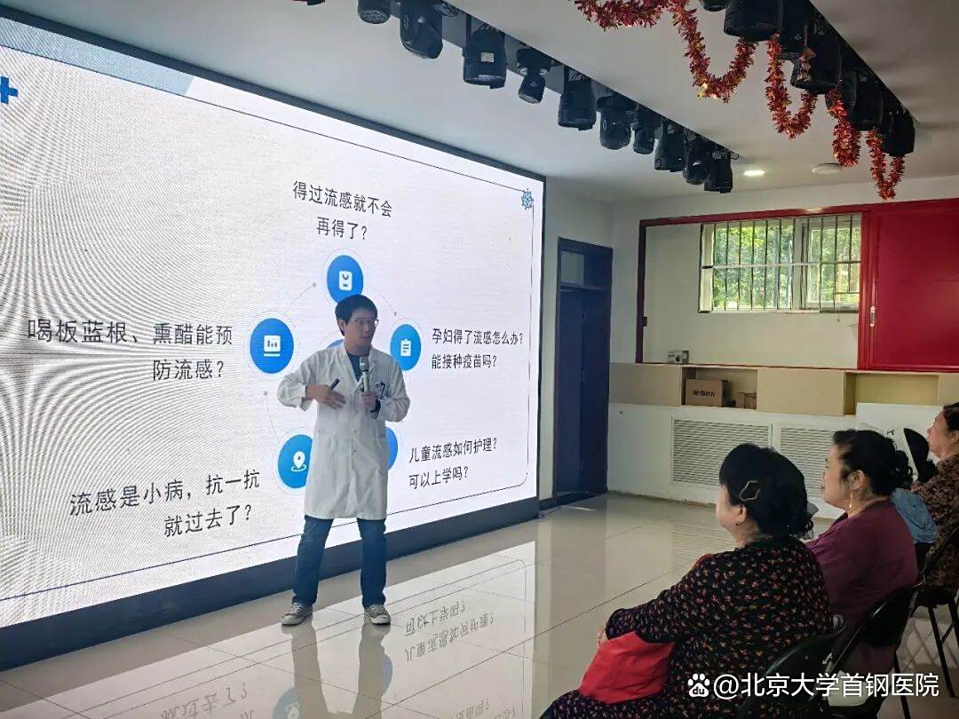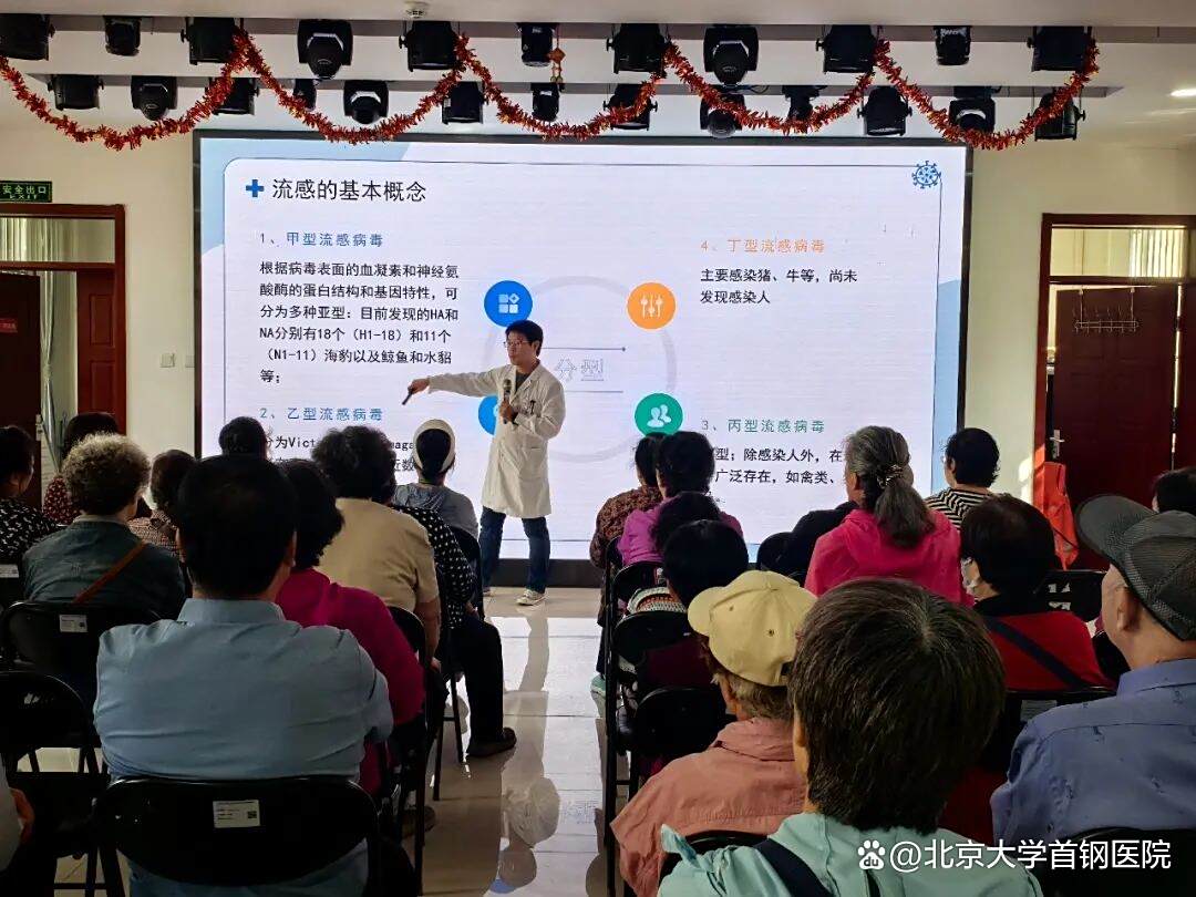 金秋九月,秋风送爽,随着气温的逐渐下降,流感进入高发期。流感作为一种常见的呼吸道传染病,传播速度快,影响范围广,给公众健康造成了较大威胁。为增强社区居民对秋冬季流感的认知,提升预防意识,帮助大家掌握科学的防治方法,2025年9月29日,北京大学首钢医院医事服务部联合老山社区卫生服务中心在老山街道西里社区居委会举办了一场流感防治知识讲座,吸引了众多居民积极参与。
