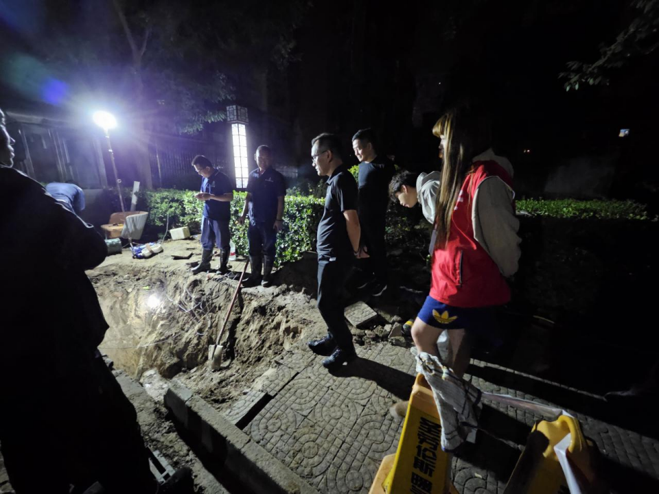 晚上7点55分,地下管网深处传来好消息——漏点终于找到了!可抢修人员检查后却带来新情况:“管道老化严重,今晚没法快速修好,得连夜施工。”街道城市管理办公室听说后,立刻驱车赶来,现场协调技术人员增援,还反复叮嘱:“安全第一,也要尽快让居民恢复正常用水!”灯光下,抢修人员穿着雨衣趴在泥水里焊接管道,社区工作人员则轮流守在旁侧,递水、记录进度,直到深夜,小区里依旧能看到他们忙碌的身影。