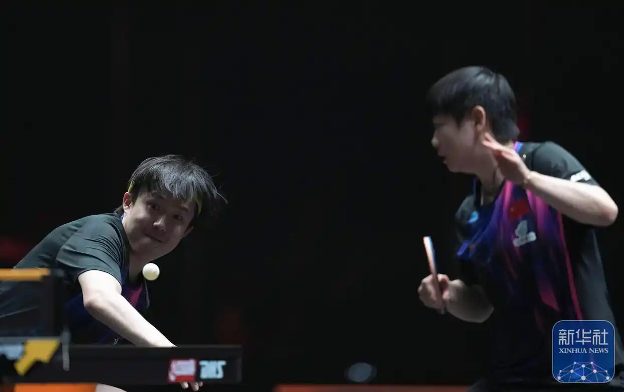 ↑ 王楚钦(后)/孙颖莎在比赛中。
