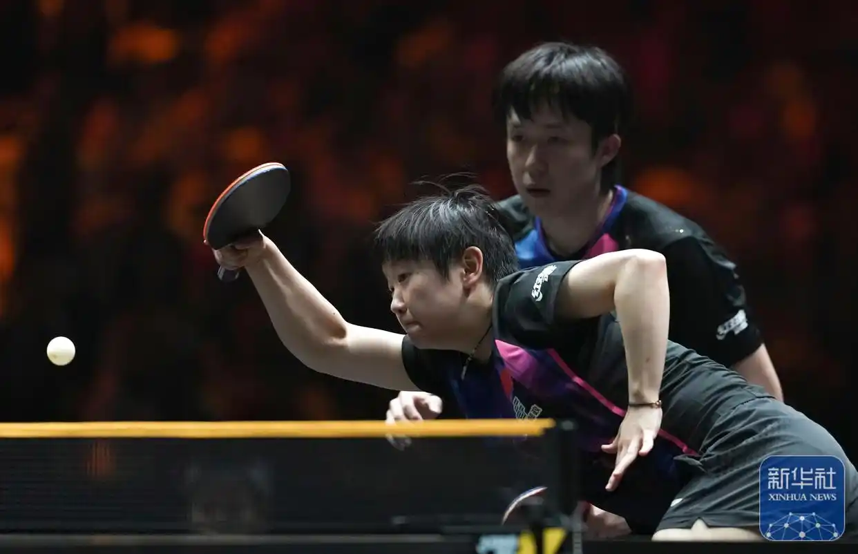 ↑ 王楚钦/孙颖莎(右)在比赛中。