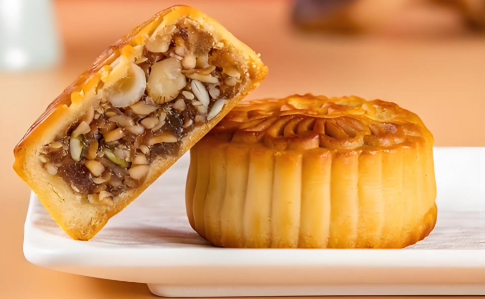 3、苏式:五仁原料搭配与其他派别类似,但会加入玫瑰酱、桂花酱等增添香气,使月饼带有浓郁的花香气息,别有一番风味。
