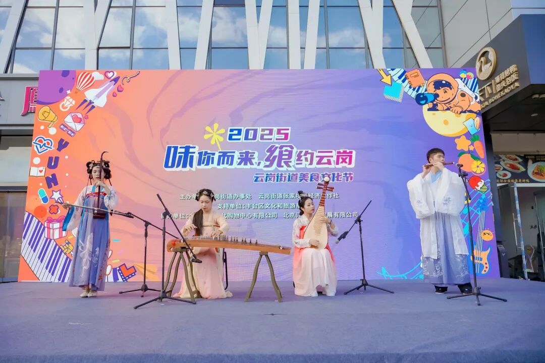 9月30日下午,京盛时代购物中心广场人声鼎沸、喜气洋洋,以“‘味’你而来,‘飨’约云岗”为主题的云岗街道首届美食文化节在此精彩启幕。本次活动在丰台区文化和旅游局的支持下,由丰台区云岗街道及张家坟村经济合作社联合主办,是丰台区打造“大戏看北京,好戏在丰台”文化品牌的具体实践,也是区文化和旅游局助力辖区文化赋能商业发展的生动体现。自9月30日起持续至10月8日,横跨整个国庆中秋双节假期,为辖区居民精心奉上一场集美食、文化、娱乐于一体的金秋盛宴。