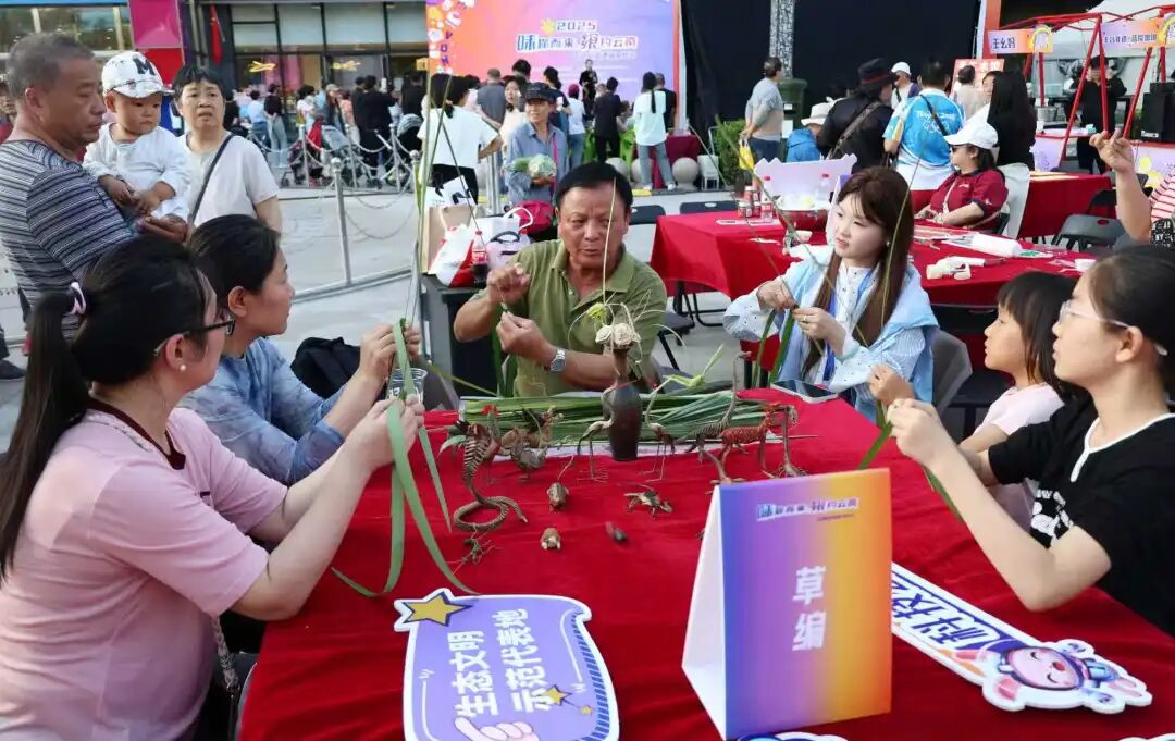 开幕式落幕,广场南侧的非遗体验区迅速成为“热门打卡地”,不少居民代表围坐于此,沉浸式感受传统技艺的魅力。月饼制作、漆扇制作、草编制作、绒花制作、彩绘葫芦等多项非遗手工体验项目同步开展,居民们参与热情高涨,现场准备的近500份体验材料很快被分发一空。