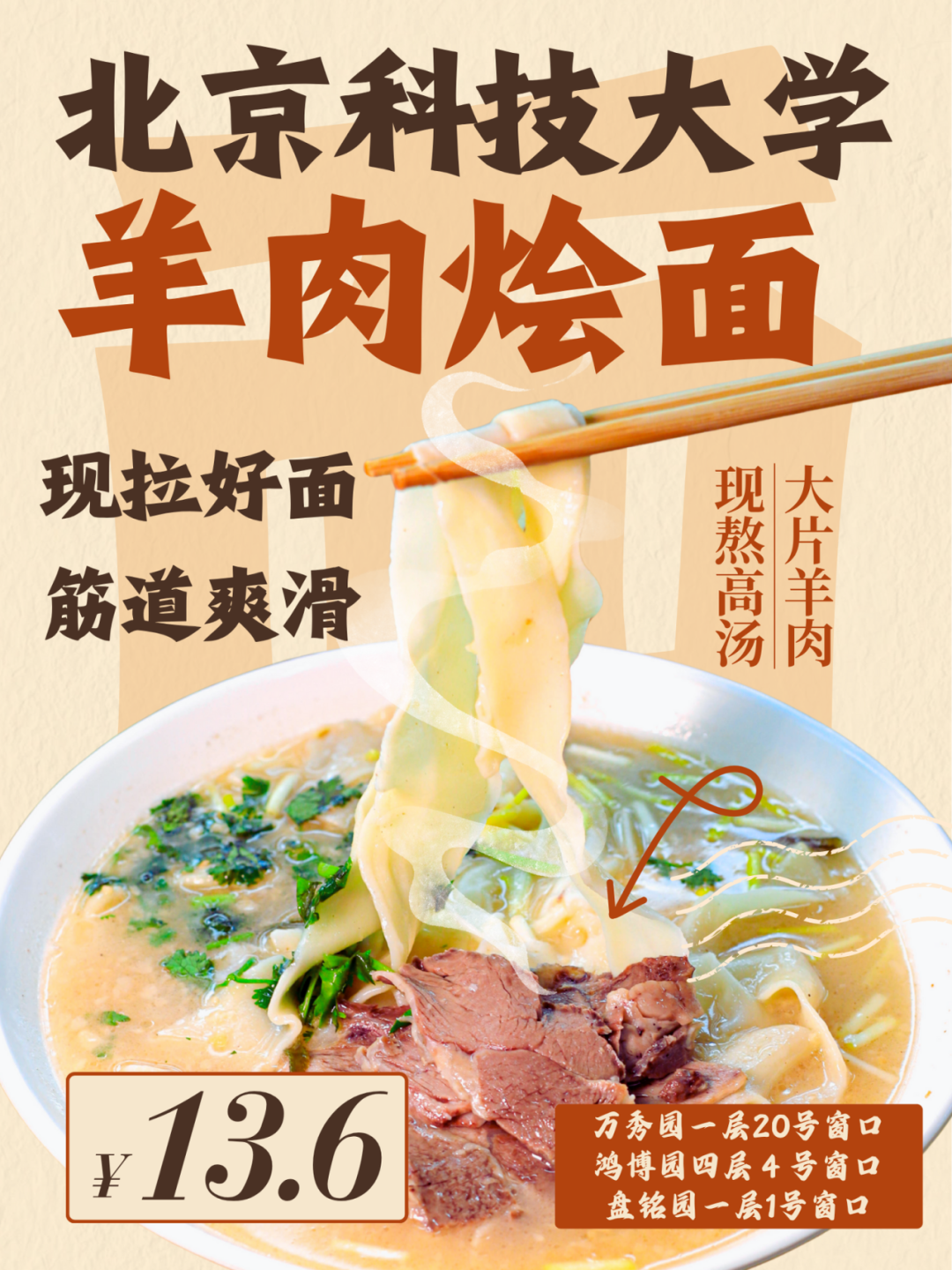 自2021年上新起“羊肉烩面”就深受师生喜爱👍