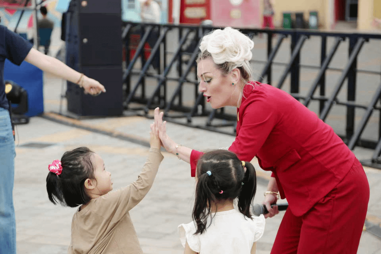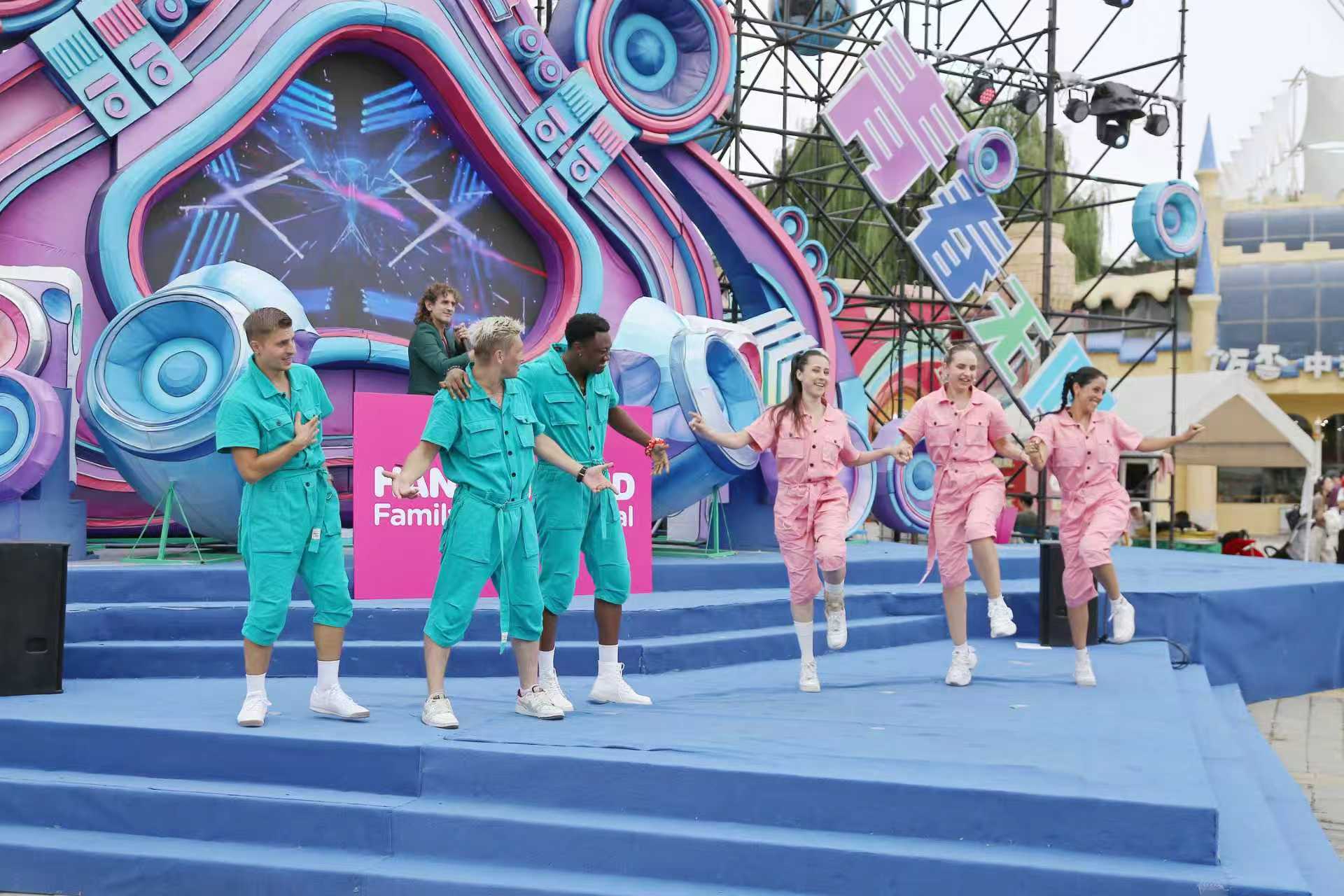 在舞台前面,处处是跃动的身影和灿烂的笑脸。孩子们无疑是今天最闪亮的主角,他们随着电音节奏自由摇摆,兴奋地挥舞着小手,纯真的笑容格外耀眼。爸爸妈妈们或是化身专属摄影师记录下快乐瞬间,或是加入孩子们的队伍一起哼唱舞动,温馨与活力在此刻交织,充满了现场的每一个角落。