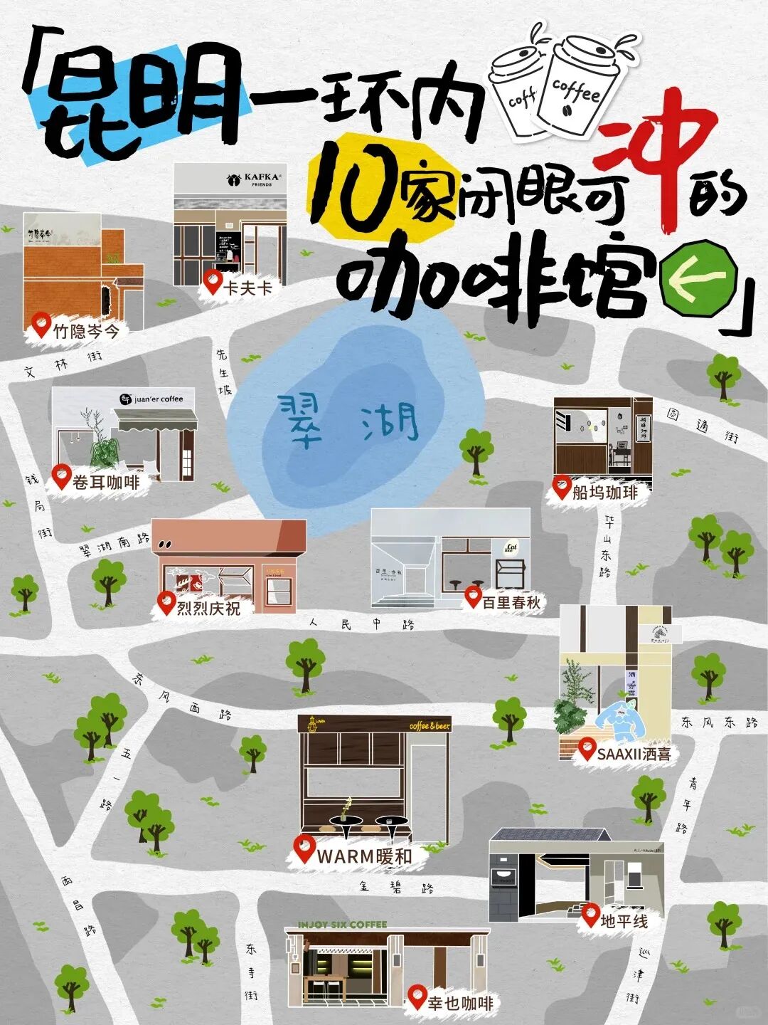 1️⃣Warm暖和 原木风温暖小馆,日咖夜酒,创意特调有名 📍地址:同仁街9号 🈺营业时间:09:00-22:00(周二店休) ☕️热门推荐:姜来、康提庄园、可露丽2️⃣SAAXII洒喜 三层独栋小楼,宽敞温馨,有咖啡有简餐 📍地址:晓东街37号 🈺营业时间:09:00-21:00 ☕️热门推荐:玫瑰岛、combo、无花果派3️⃣地平线All·ttitude1891 把云南元素融进店名和创意咖啡,滇味十足 📍地址:多家门店可搜附近 🈺营业时间:09:00-19:00 ☕️热门推荐:翠湖夏天、猪拱菌dirty、一个泡梨