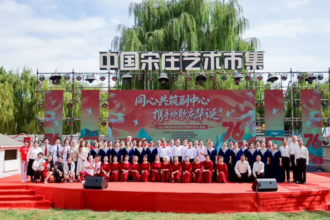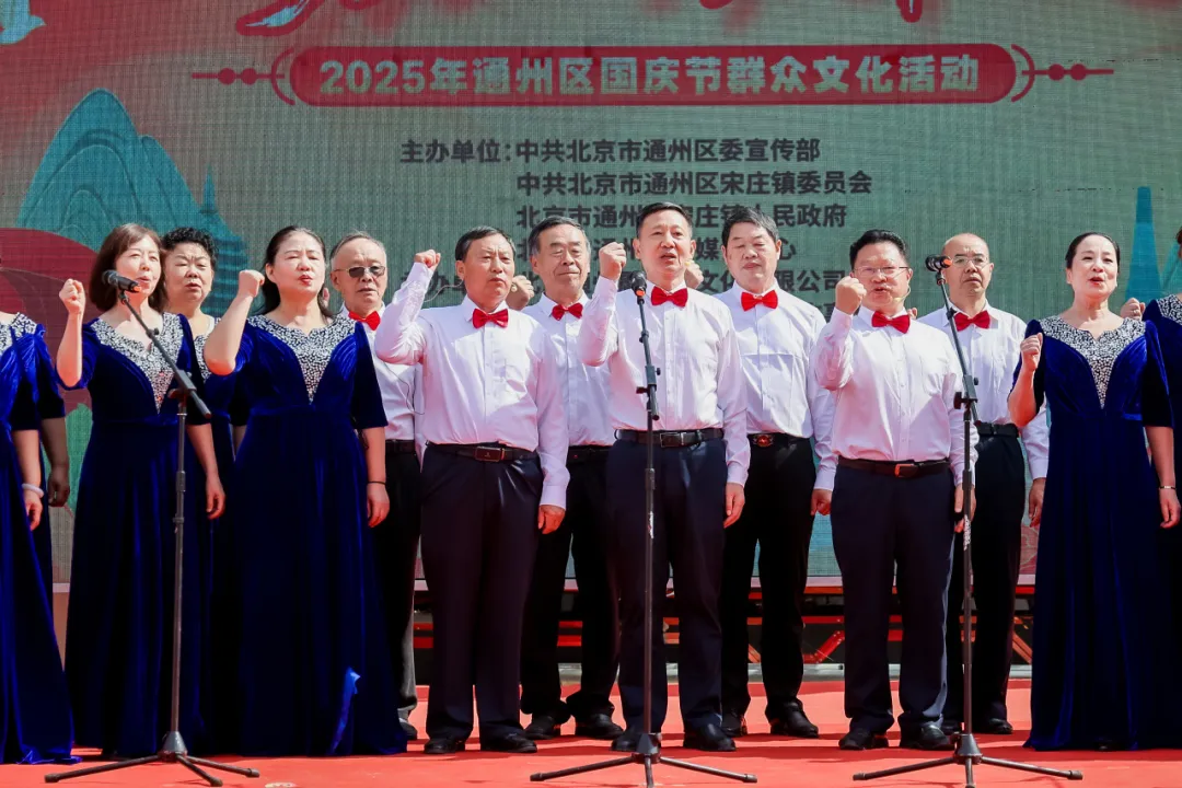 在宋庄艺术市集广场,“同心共筑副中心,携手欢歌庆华诞”2025年通州区国庆节群众文化活动以歌曲、舞蹈、朗诵等表演形式拉开了十一的精彩篇章。