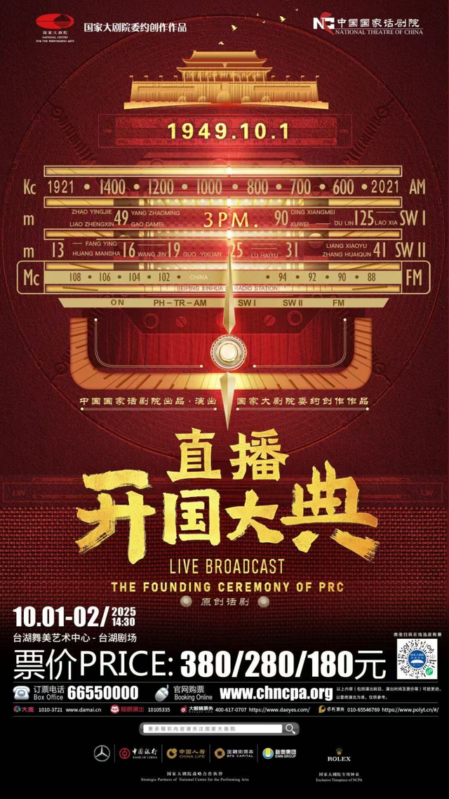 国庆节即将到来,中国国家话剧院谍战话剧《直播开国大典》将在国家大剧院台湖剧场上演。故事聚焦那些为开国大典的直播保驾护航的幕后英雄们。站在76年后的同一天,让我们共同回望那荣耀的历史时刻,见证历史的声音如何穿越电波、响彻时代。