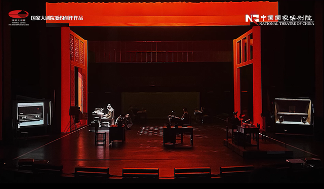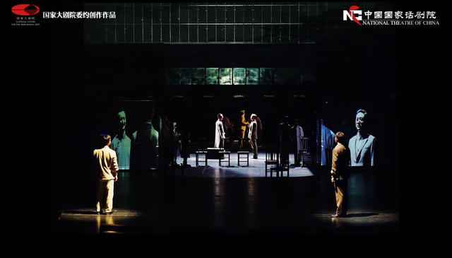 舞台纵深向前延伸,构建出从前门大街到电台工作室的沉浸式空间,仿佛带领观众穿梭于1949年的北平街巷之中。多块投影屏分割并重构舞台,形成历史与当下的超时空对话,视觉效果格外震撼。
