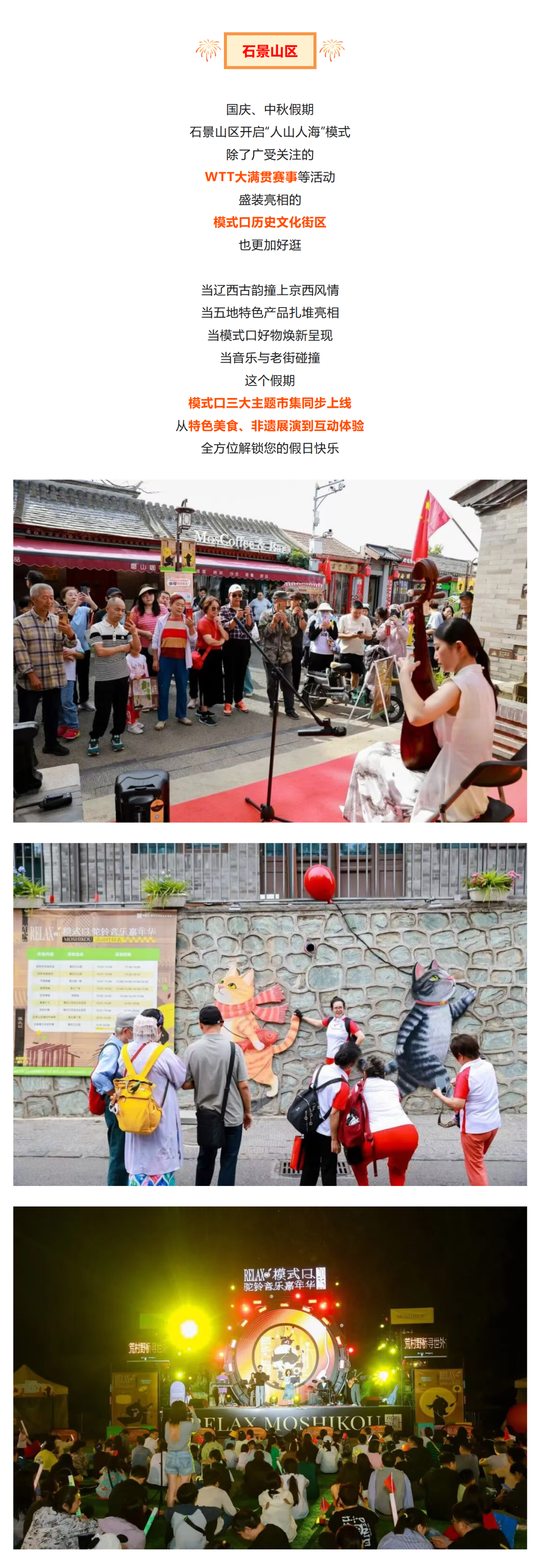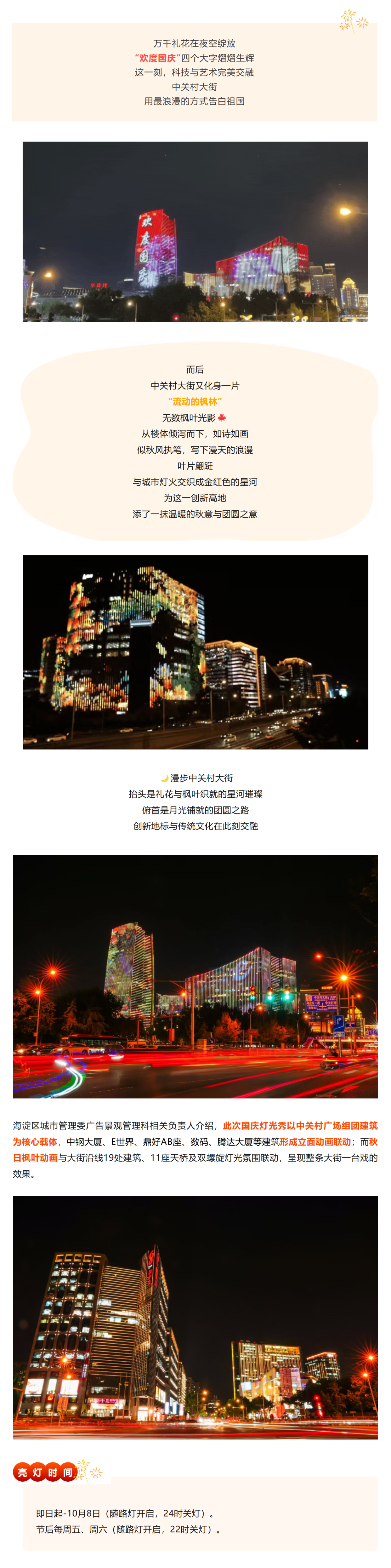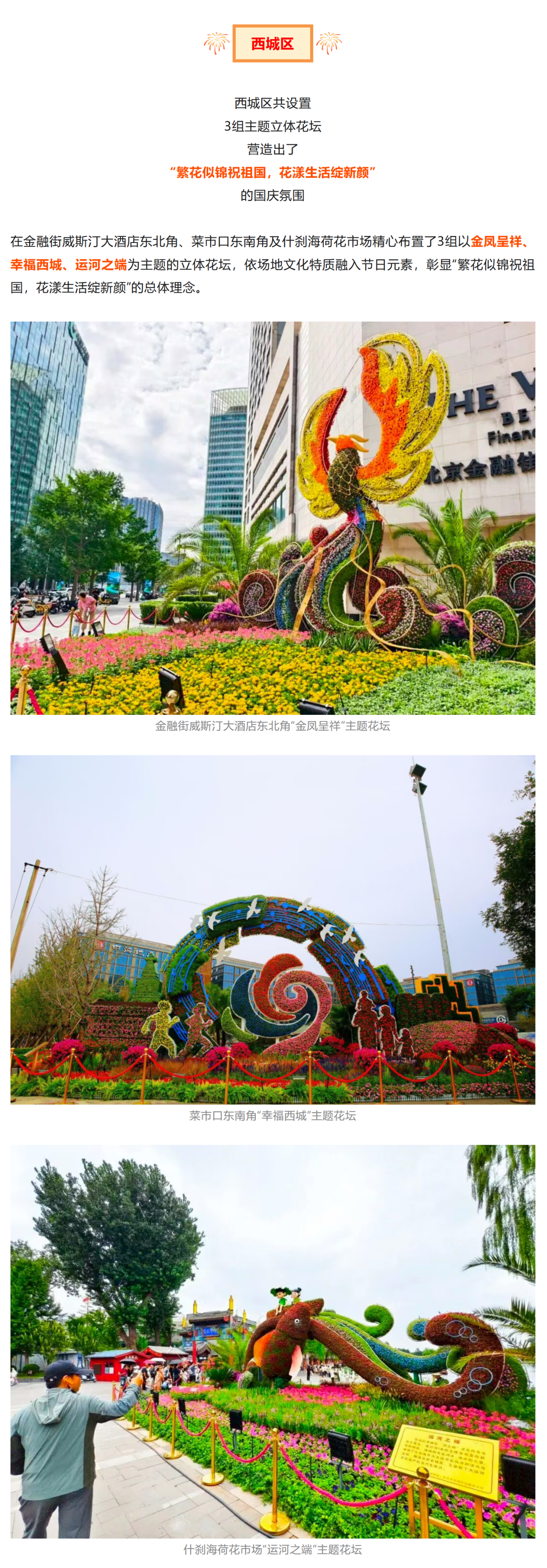 国庆、中秋假期,京城流光溢彩,景观布置花团锦簇,文化街巷特色活动,夜景灯光秀定时开启……这个假期逛京城,小编为您支支招儿!↓↓↓