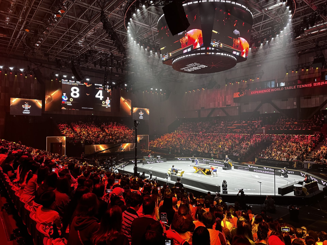 10月3日晚,WTT混双决赛吸引了全球观众的目光,八极场主场馆内更是人气爆棚。当主持人宣布王楚钦、孙颖莎出场的时刻,全场爆发出山呼海啸般的欢呼声。