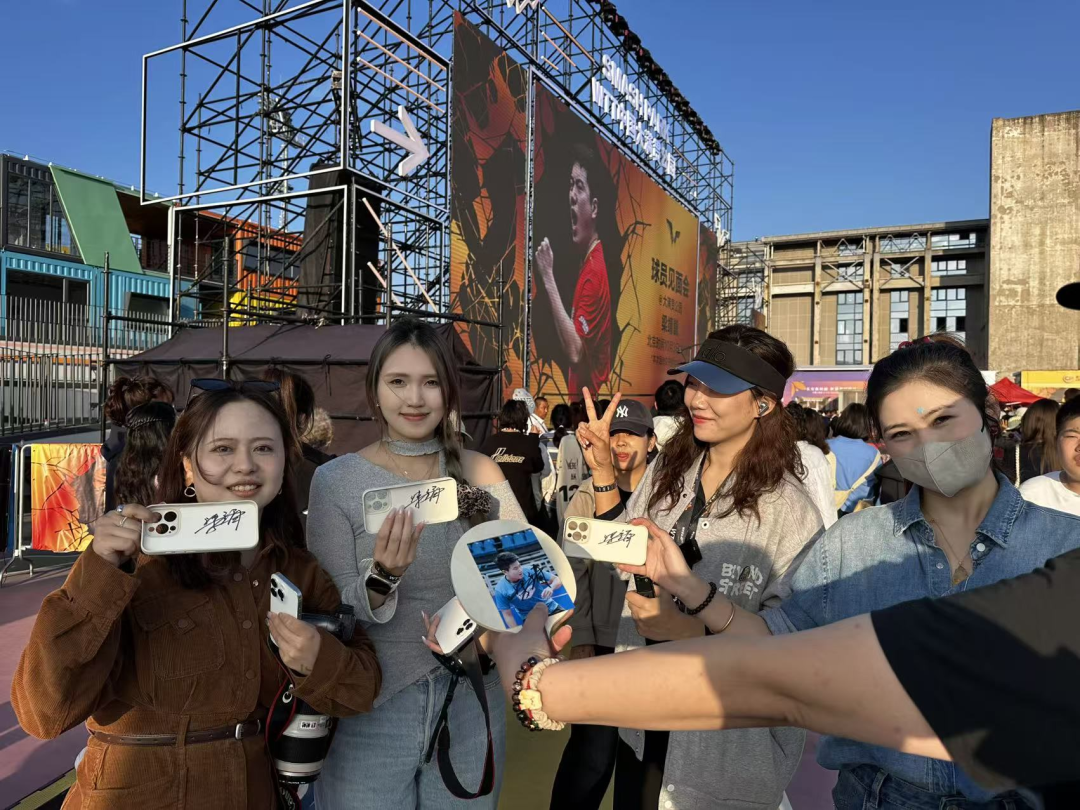 时间来到下午4点半,梁靖崑准时到场,现场的氛围一下被点燃,热情的球迷跟随主持人齐声喊出梁靖崑的名字,紧接着,前一百名幸运观众上台与梁靖崑近距离互动,获得签名和专属合影后,每个人脸上都写满灿烂的笑容。最后,梁靖崑拿起手机,与现场球迷观众来了一张大合影,现场氛围达到了高潮。