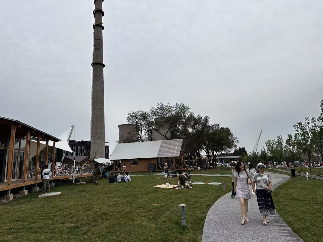 从热情洋溢的大满贯公园移步至一旁的永定河畔,新近开放的永定河集则是洋溢着京西独有的松弛氛围,蓝天白云下,石景山功碑阁、首钢冷却塔与永定河交相辉映。不少人在空旷的草坪上支起天幕,摆上露营桌椅,享受这份秋高气爽的宜人氛围,还有人半倚在斜坡草坪上,沐浴和煦的日光与河畔的微风,静享惬意。永定河集上,也不乏带娃的家庭和遛狗的人群,大家在小店里发现惊喜,在交流中增进感情,在运动中释放压力,人与自然和谐共生的环境让每个人都自得其乐。