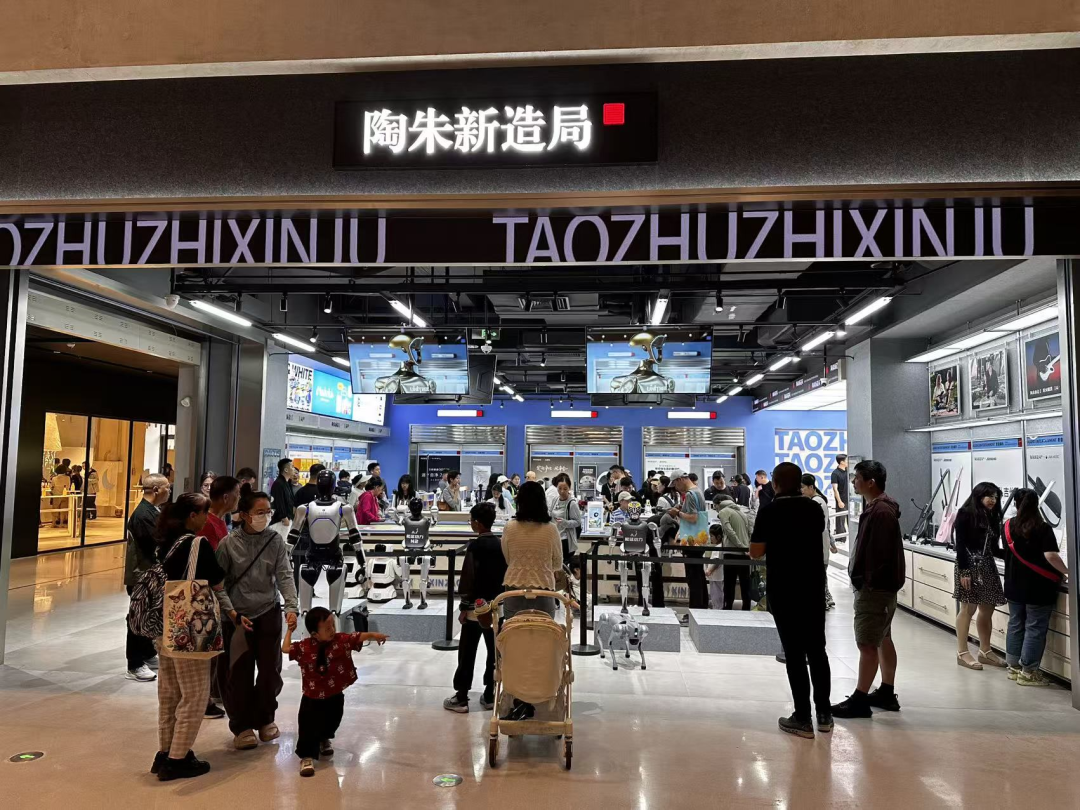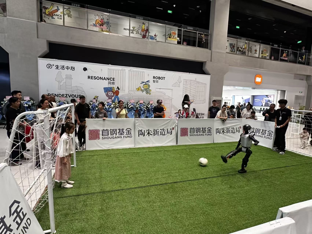 首钢园内,“十一”当天新开放的融石广场商业空间,也是游客争相尝鲜体验的热门目的地。作为一家小而精的商业体,融石广场首批开业的十余家店都很有特点,很能激发大家的探索欲和好奇心。陶朱新造局商店门前,小型的足球场有机器人足球赛,吸引了很多人围观。作为国内首家机器人产品集合店,这里集中展示了宇树科技、松延动力等国内领先的机器人产品,带来很多颇具创新和想象力的AI产品。