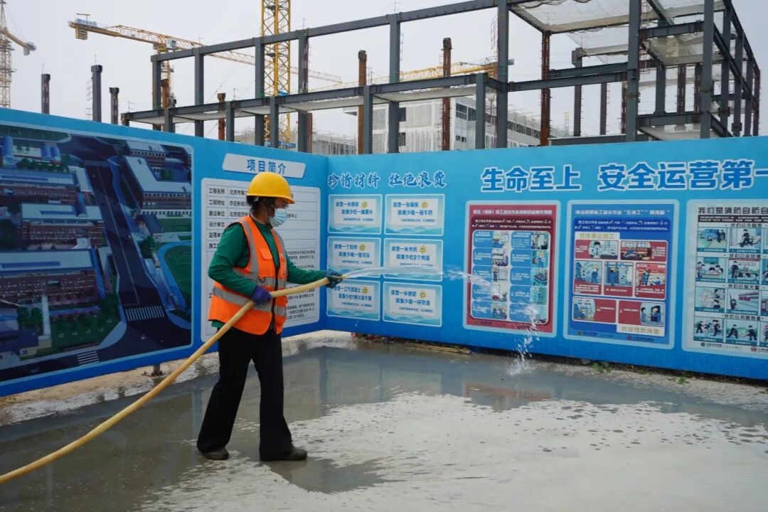 50岁的刘桂莲来自河北承德隆化县,她主要负责扫地洒水等与文明施工相关的工作。此时,她正拿着洒水壶,沿着施工道路缓缓行走,细密的水珠落下,有效压住了扬起的尘土。“这活儿看着简单,但不能停,得不停地走,才能压住尘土,看出效果。”刘桂莲直了直腰,裤脚沾着泥土却依旧整齐。她的丈夫刘长财也在同一工地干活,她欣慰地说:“我俩一起守着,心里也踏实。”