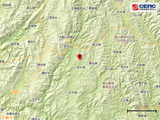附近村镇:本次地震周边5公里内的村庄有凉水箐、向阳村、张家村、魏家村、大石头、下岔河、陶家村、烂潭村、大荒田、大村,20公里内的乡镇有民乐镇、景谷镇。